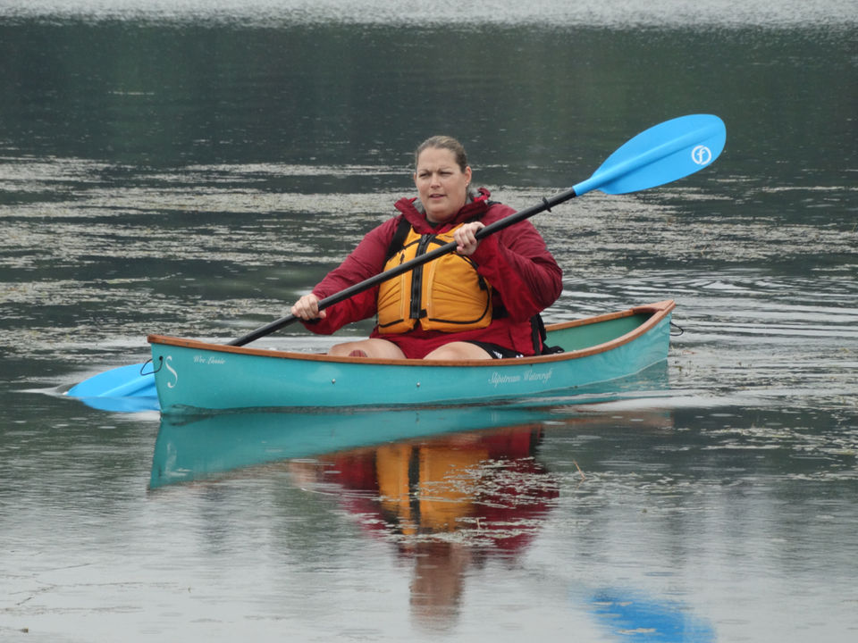 The hull is pleasantly maneuverable on the tiniest of streams yet it tracks well on open water -- the glide will amaze you! John Henry Rushton designed the canoe to be paddled with a double blade (kayak style) which offers many advantages: easier control, greater speed, less fatigue . . . but some prefer a traditional canoe blade or rowing.